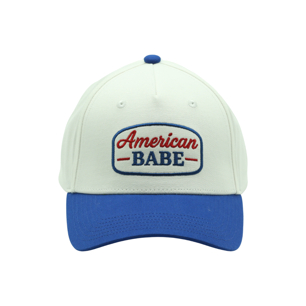 Celebrate classic American style with the American Babe Patch Baseball Cap. Designed with a bold embroidered patch featuring red and blue lettering, this hat delivers a vintage-inspired look with timeless patriotic appeal.